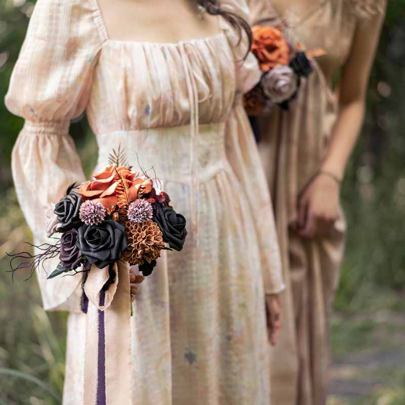 Assorted Floral Centerpiece Set in Black & Pumpkin Orange