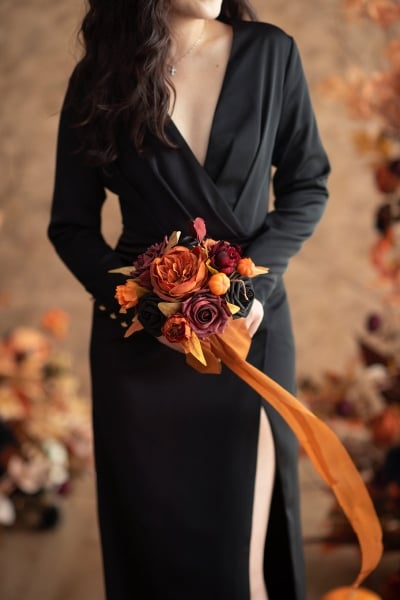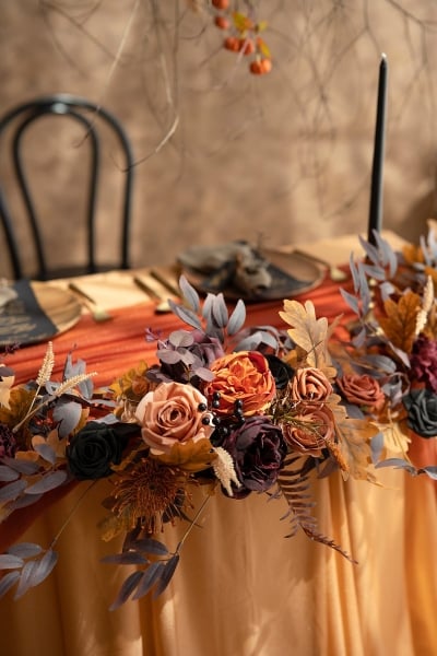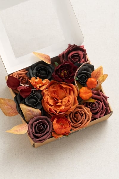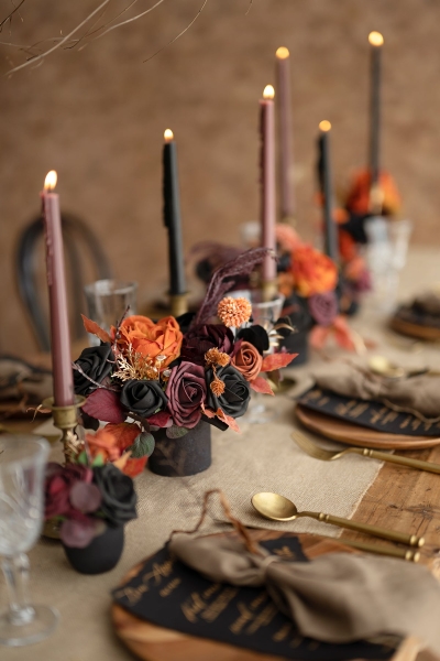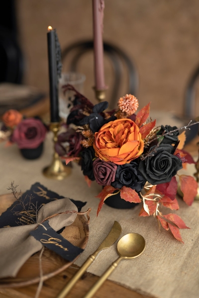 Assorted Floral Centerpiece Set in Black & Pumpkin Orange
