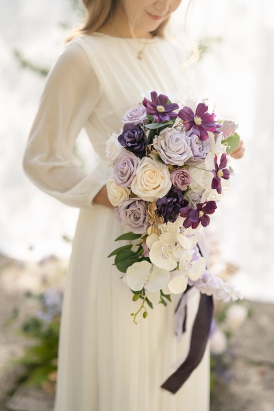 Small Cascade Bridal Bouquet in Lilac & Gold