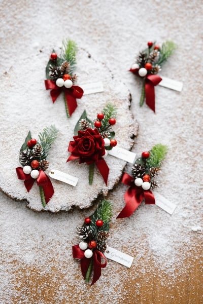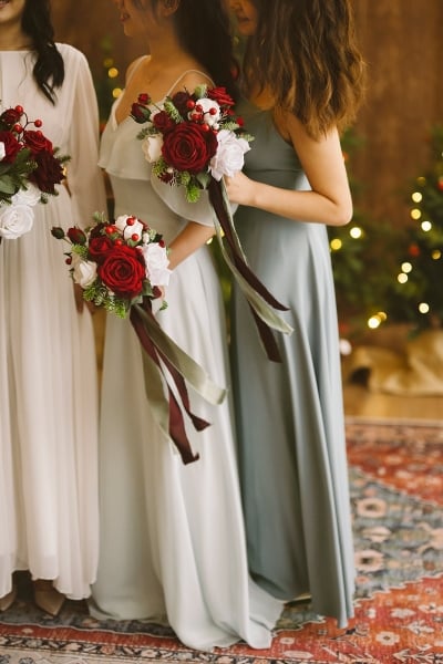 Round Bridesmaid Bouquets in Christmas Red & Sparkle
